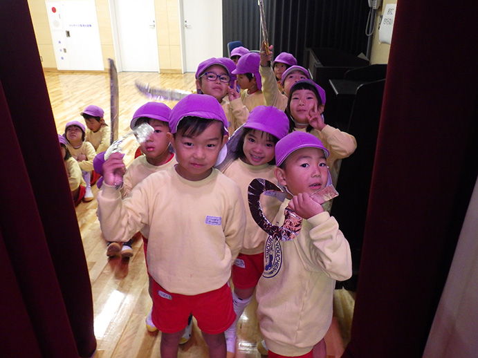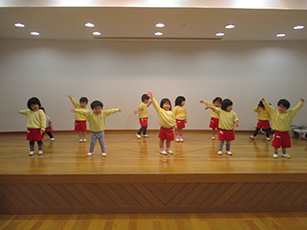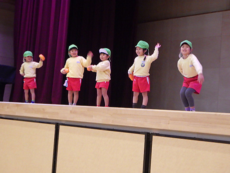 おゆうぎ室のステージで練習。