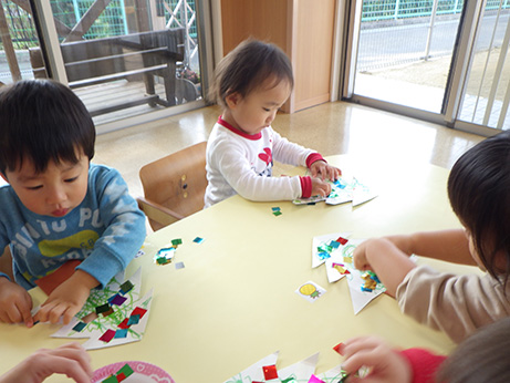 大小さまざまなシールを上手に貼ることができました。