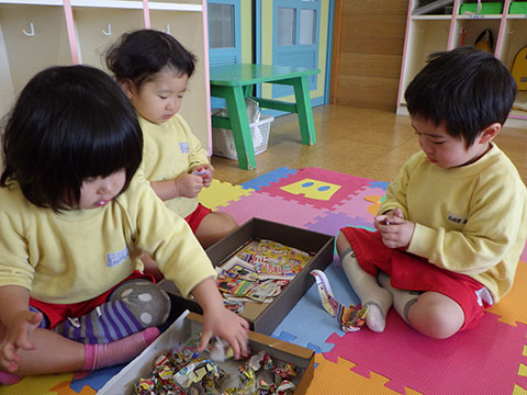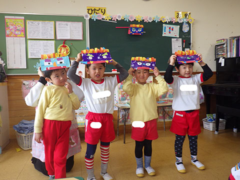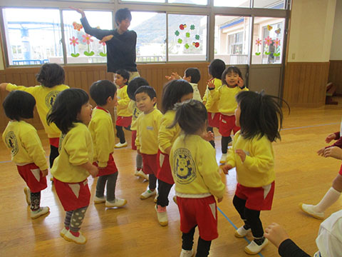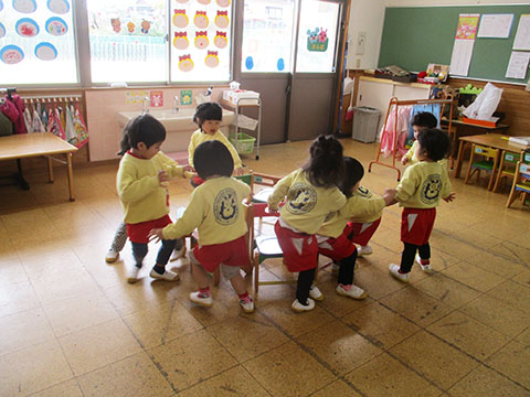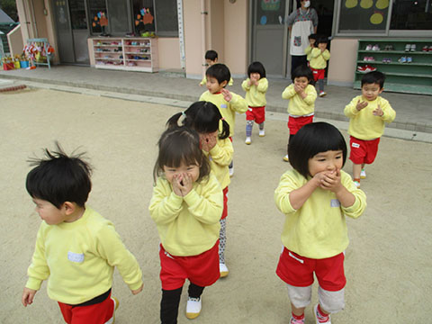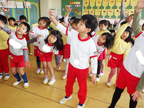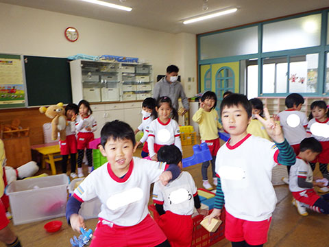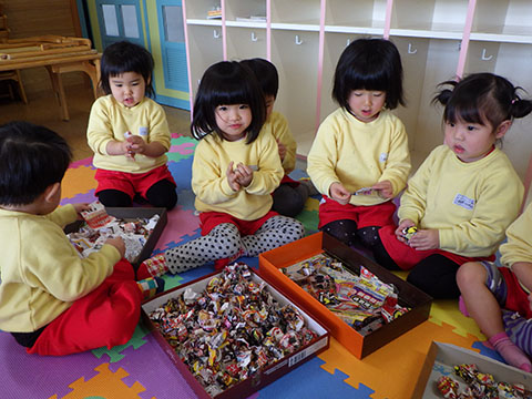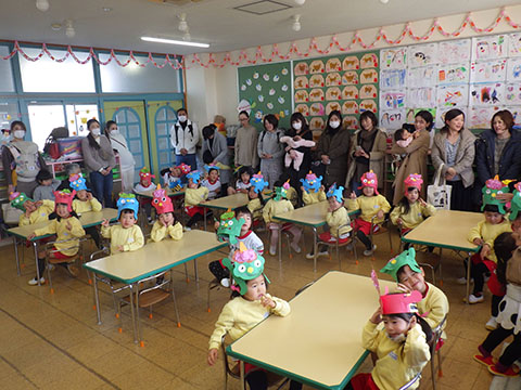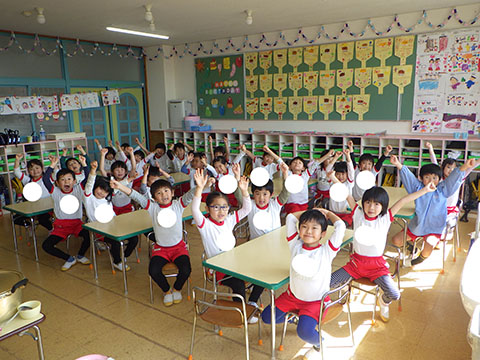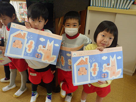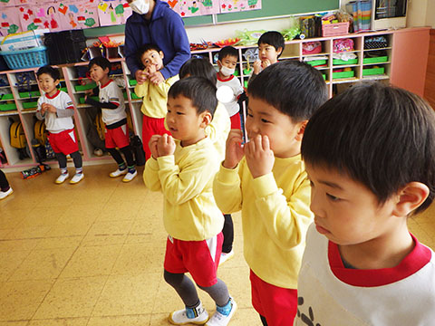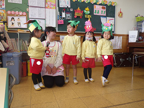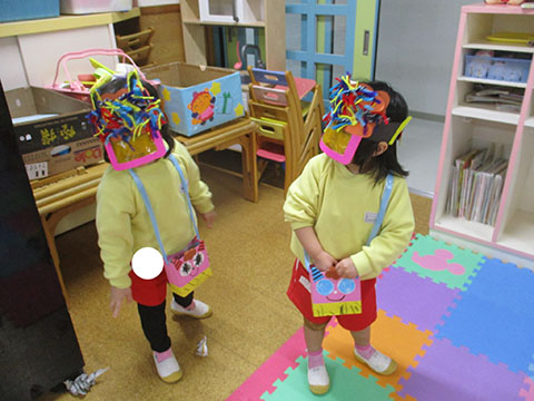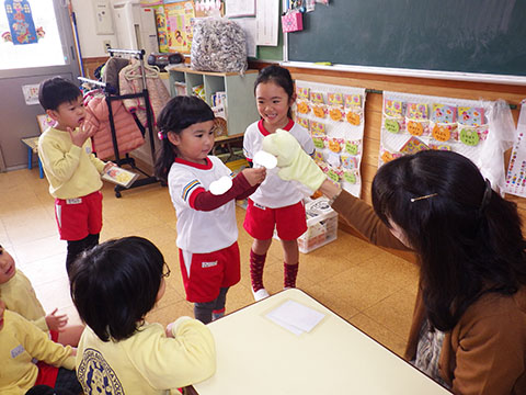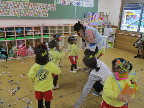 さんぽぐみさんも、豆まきのリハーサル。