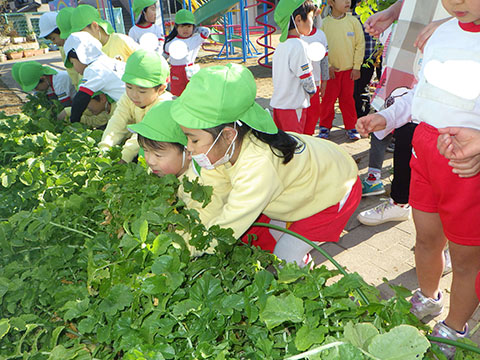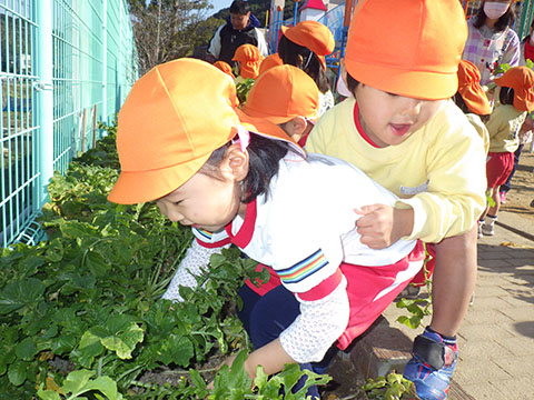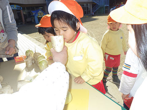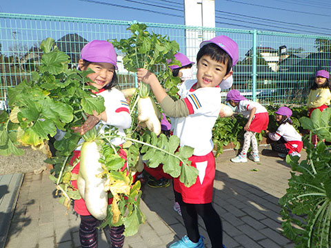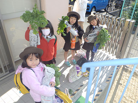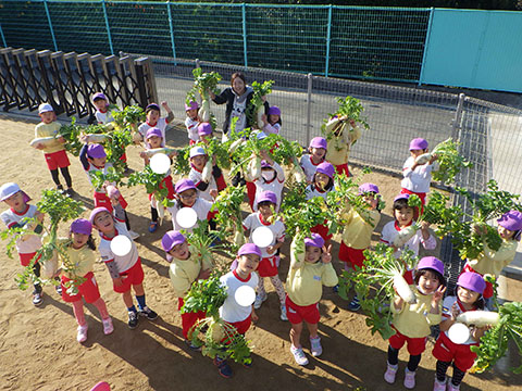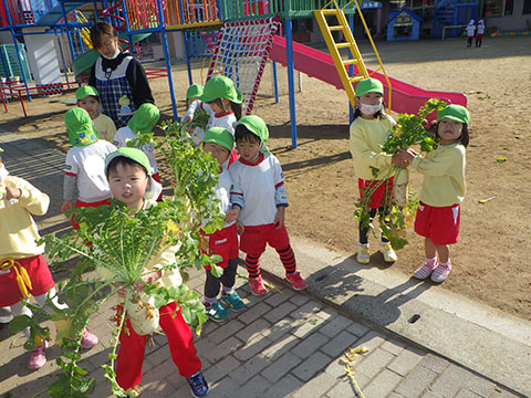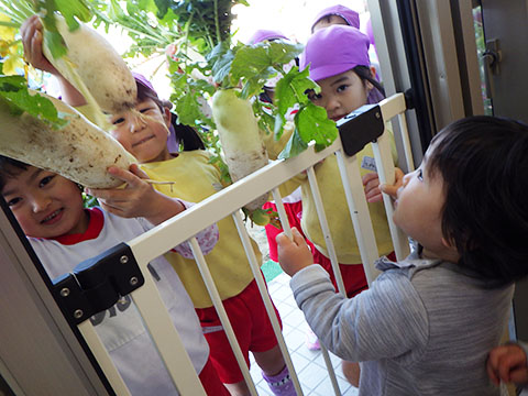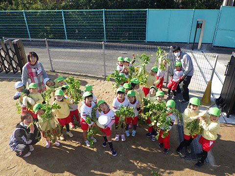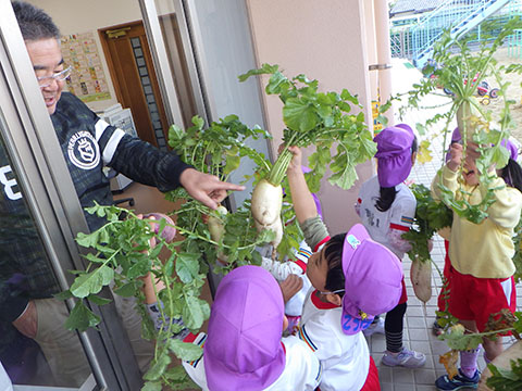 幼稚園のお兄さん、お姉さんたちがとった大根。