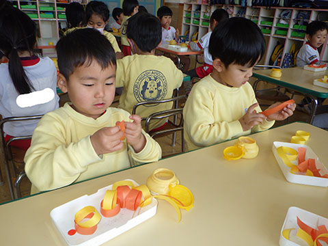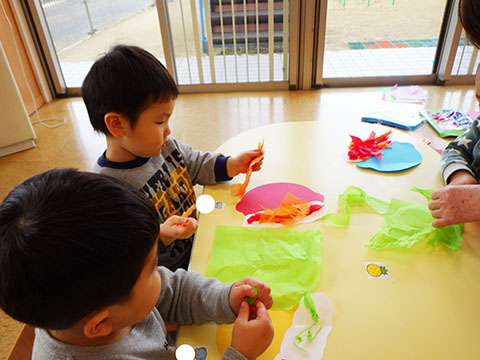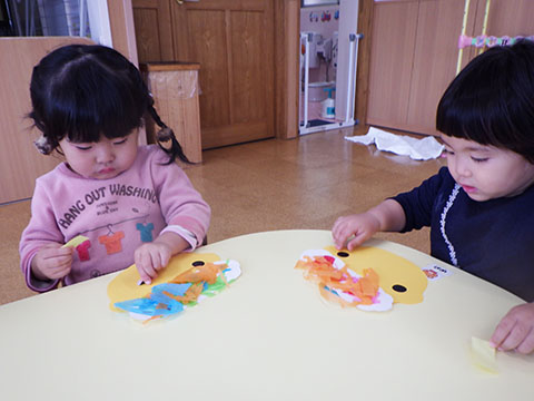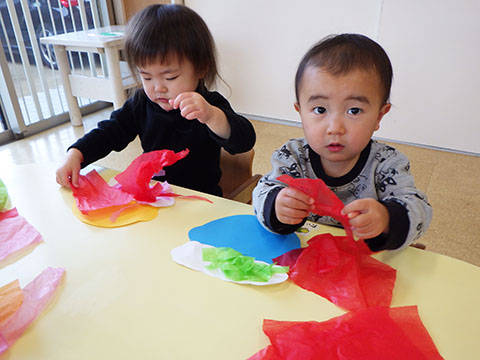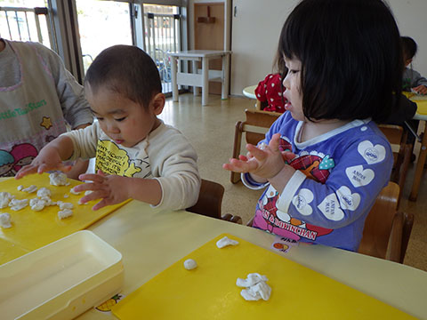 くるくる丸めたり、ちぎったり・・・