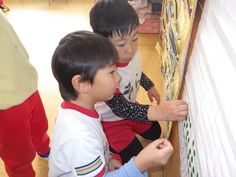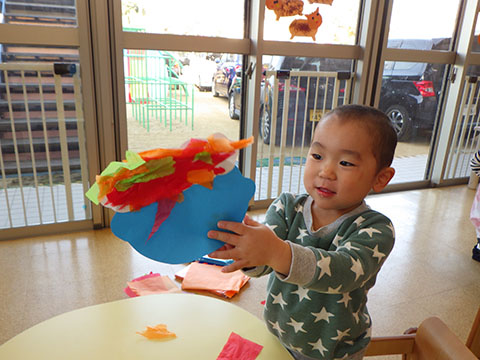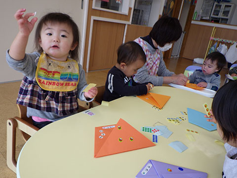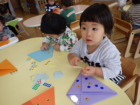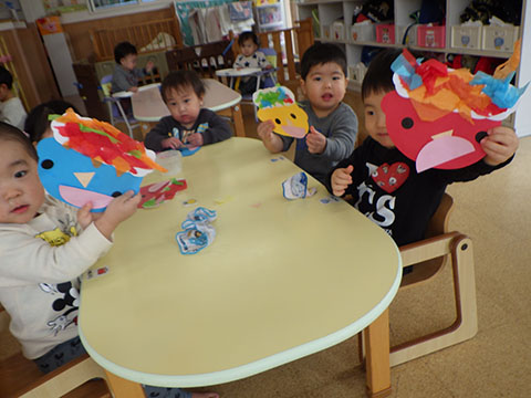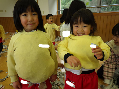 鬼のシールや丸シールを貼って、楽しみましたよ。