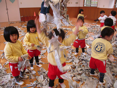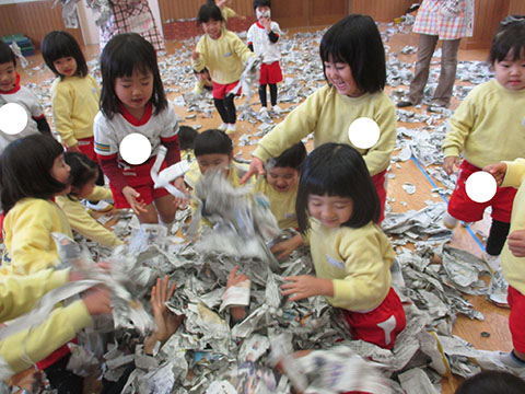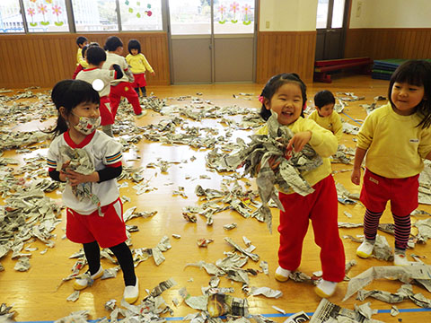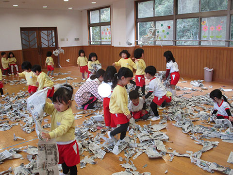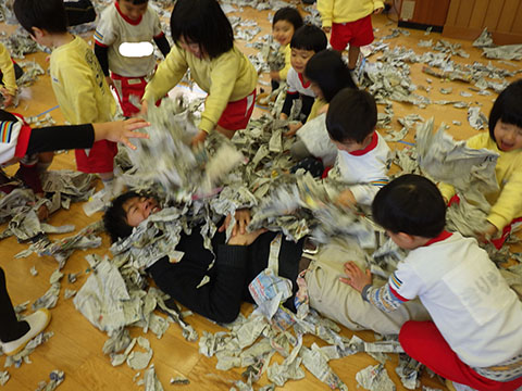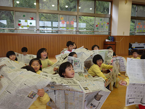 その後は豪快に新聞あそび。