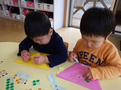 手先を器用に使って、小さいシールも貼れるようになりました