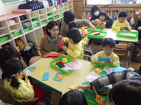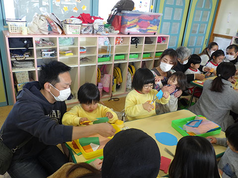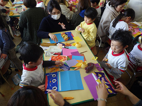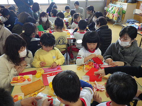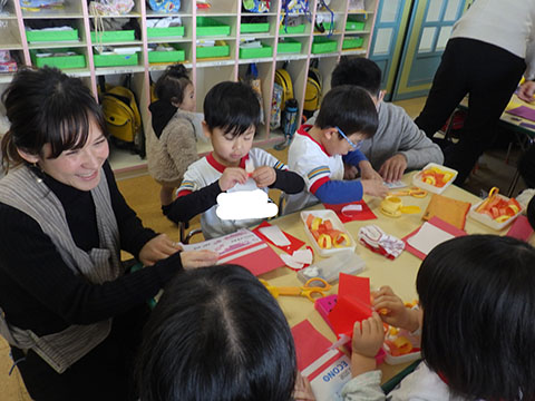 節分の豆ぶくろ作り。