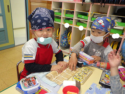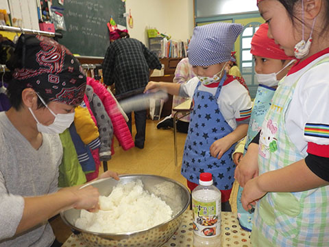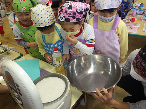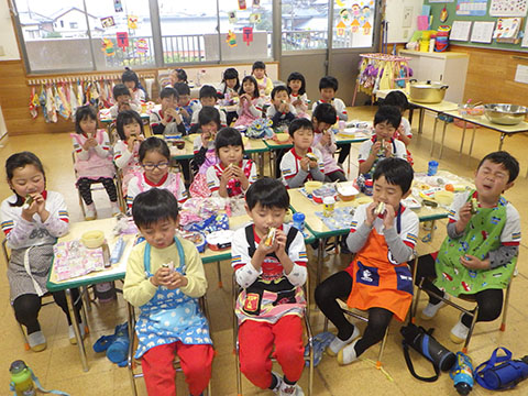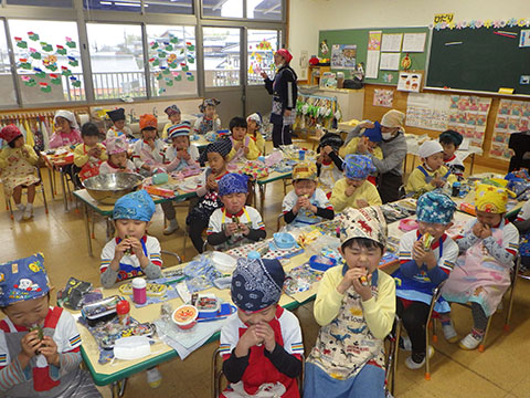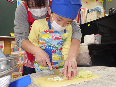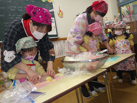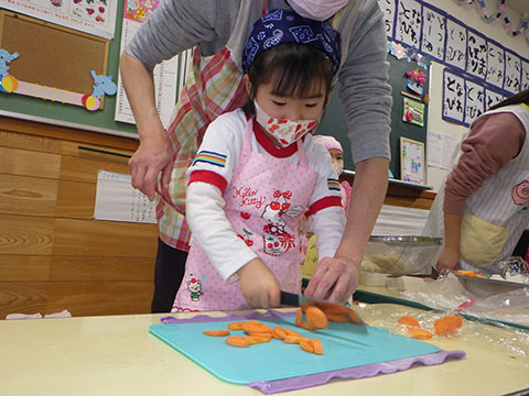 幼稚園は楽しみにしていたクッキング。