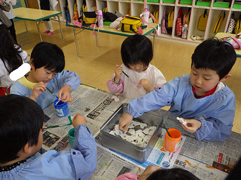 はじき絵をしたり、花紙を広げて着物を作りましたよ。