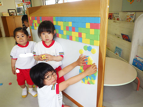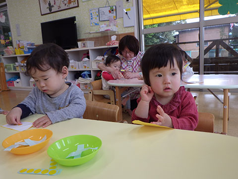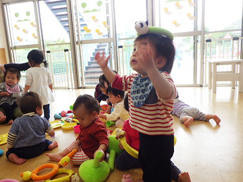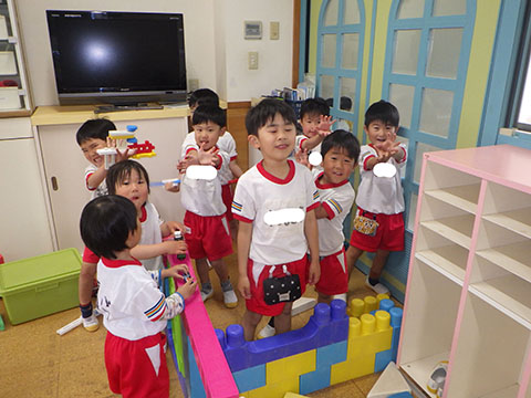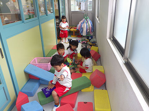 少し雨が降っていたので、お部屋で楽しそうに遊んでいましたよ。