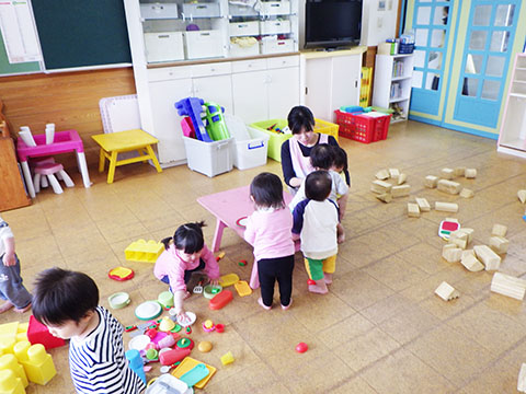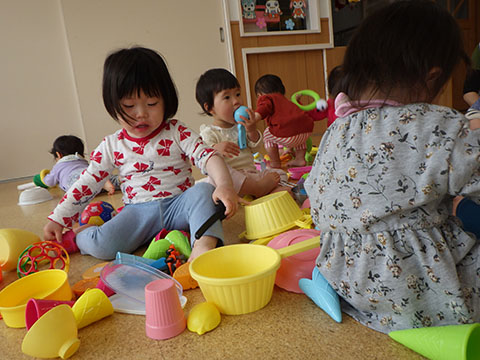 いっぽさん、にほさんはおもちゃをいっぱい出して、自由あそび。