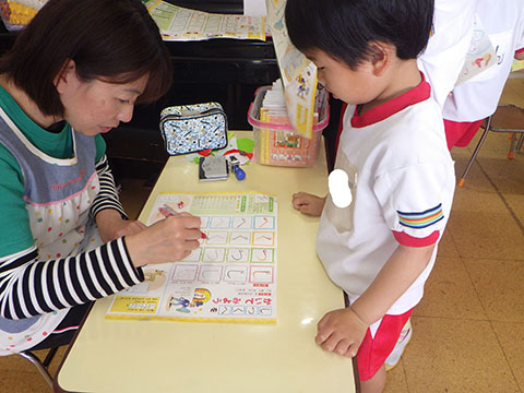 がんばったごほうびに、先生から花丸をもらいましたよ